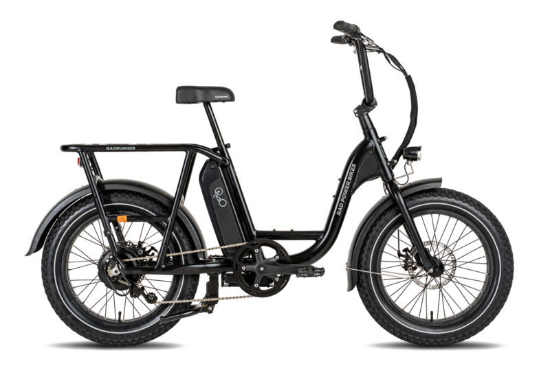 The RadRunner packs a massive amount of versatility into a small and compact package. It combines the upright geometry of a casual city cruiser with the high weight capacity of a cargo bike. It is fit with custom 20-inch Kenda fat tyres with widely spaced treads, a comfortable padded seat and a formidable rear rack that can carry up to 120 lbs.